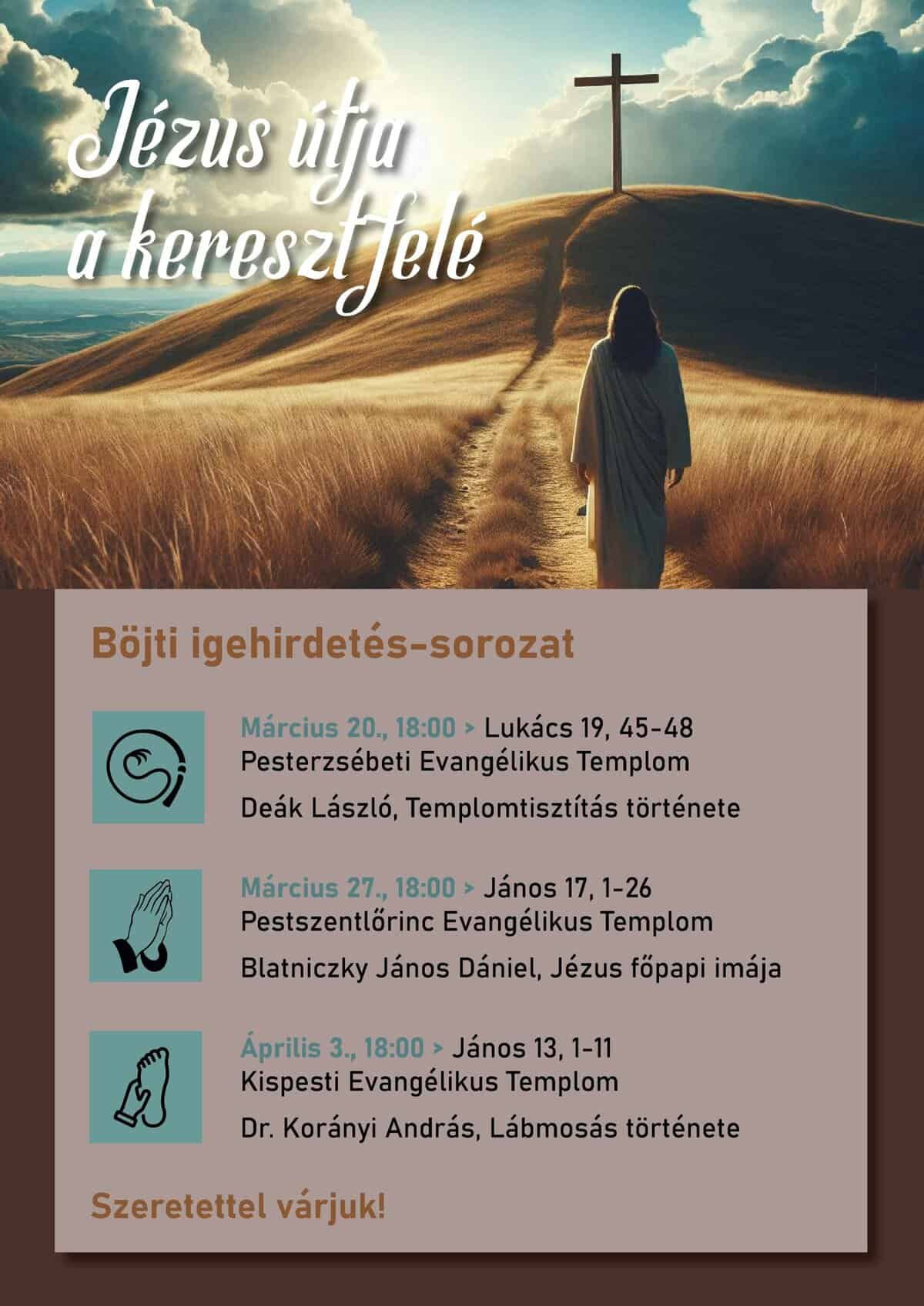 Böjti sorozatunk három különböző helyszínen zajlik. Az első alkalomra március 20-án kerül sor a Pesterzsébeti Evangélikus Templomban, Deák László esperes úr előadásában este 6 órakor. A többi esemény március 27-én … [Read more…]