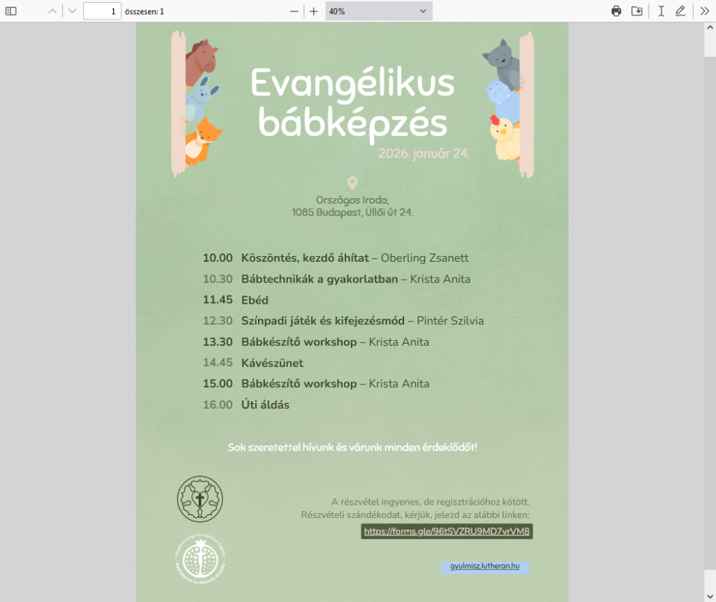 A következő héten szombaton ( január 24-én) 10 órától a bábozást szeretőknek lesz egy tanfolyam az MEE székházában az Üllői úton.
