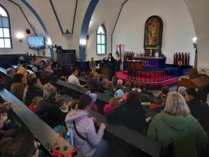 A Fecskefészek ovi középső és nagycsoportos ovisai vettek részt március 27-én egy nagypénteki „előzetes” istentiszteleten.